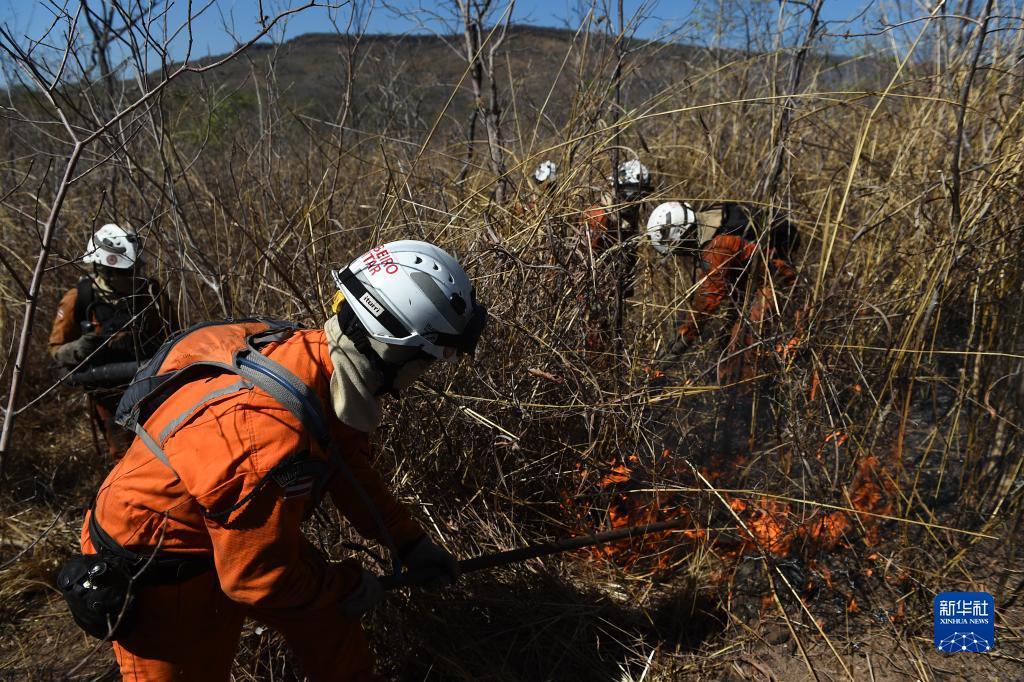 9月22日,消防人員在巴西巴伊亞州里亞尚-達斯內維斯附近進行滅火作業。