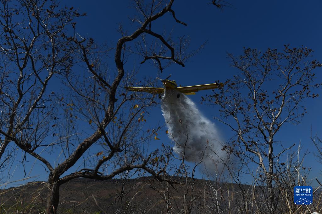 9月22日,一架飛機在巴西巴伊亞州里亞尚-達斯內維斯附近進行滅火作業。