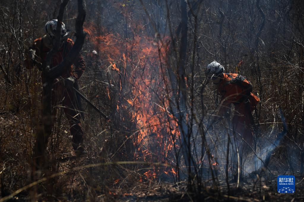 9月22日,消防人員在巴西巴伊亞州里亞尚-達斯內維斯附近進行滅火作業(yè)。