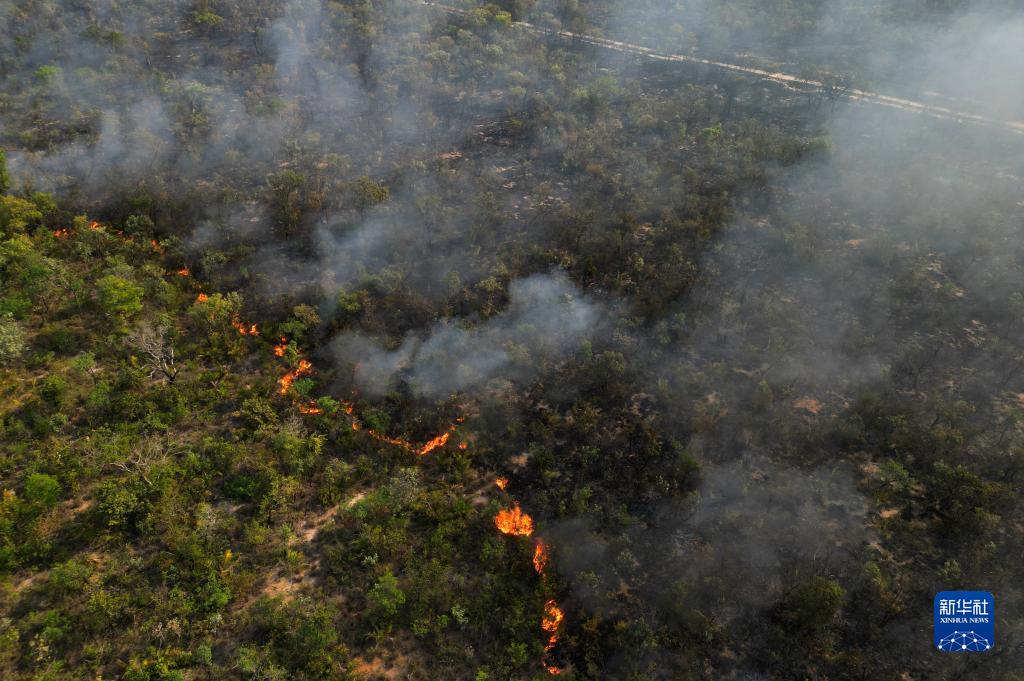 這是9月21日在巴西巴伊亞州巴雷拉斯市附近拍攝的森林火災(zāi)現(xiàn)場(chǎng)(無人機(jī)照片)。