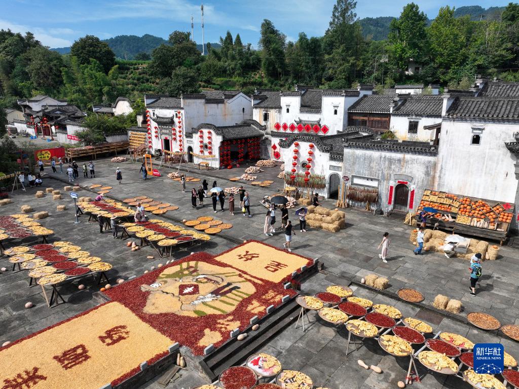 金秋時節,在安徽省黃山市徽州區呈坎村及黃山市歙縣深渡鎮陽產村,“曬秋”成為秋天里一道靚麗的風景。“曬秋”是皖南地區的傳統習俗,由于氣候潮濕,當地村民利用晴好天氣,將收獲的農作物集中晾曬。五顏六色的農作物被拼成精美的圖案,慶祝豐收的同時,也成為當地特色景觀,吸引不少游客前來觀賞。