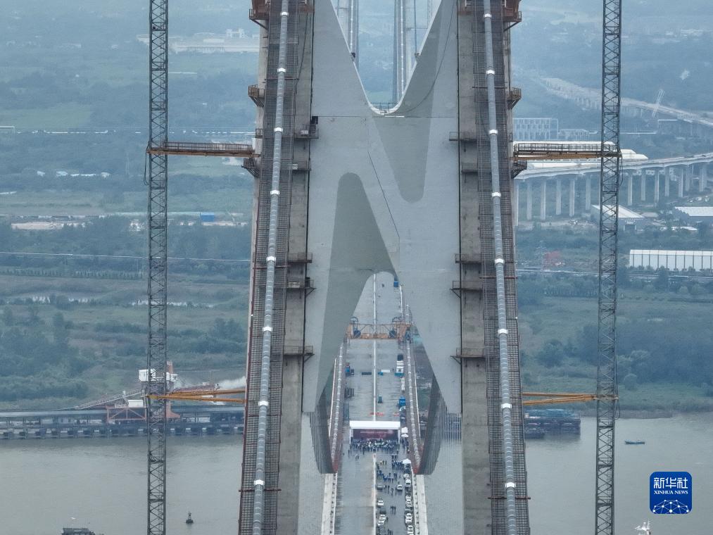 9月23日拍攝的南京仙新路過江通道跨江大橋(無人機照片)。