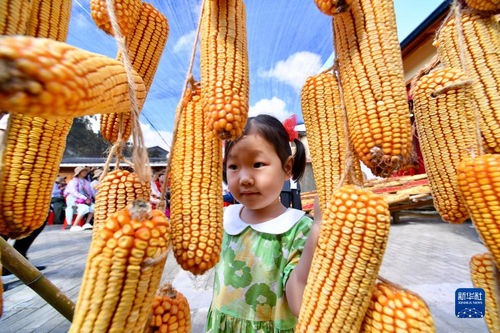 9月23日,一名孩童在桂峰村“曬秋”節上玩耍。