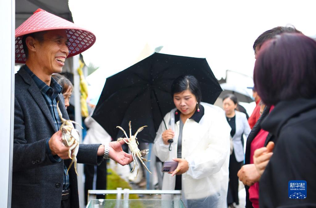 9月23日,養(yǎng)殖戶在活動現(xiàn)場售賣螃蟹。