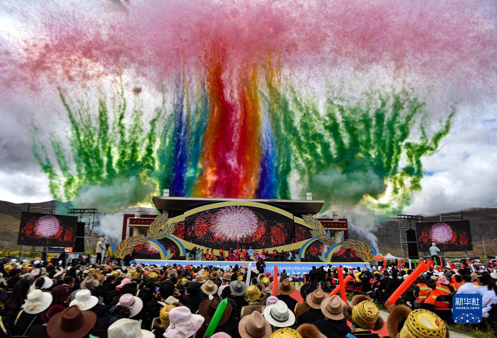 當(dāng)日,2023年西藏山南中國(guó)農(nóng)民豐收節(jié)暨隆子縣玉珞文化旅游節(jié)開(kāi)幕式在隆子縣舉行。當(dāng)?shù)匚乃嚬ぷ髡邽楝F(xiàn)場(chǎng)數(shù)千名農(nóng)牧民觀眾獻(xiàn)上精彩演出,共慶豐收,歌頌家鄉(xiāng)。