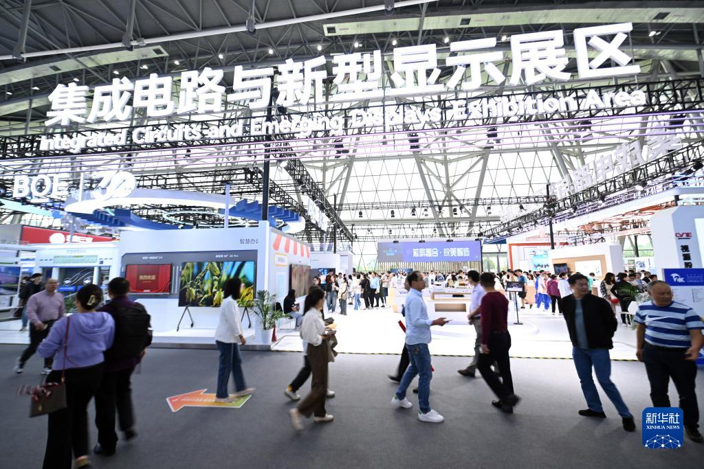 9月22日,觀眾在2023世界制造業(yè)大會集成電路與新型顯示展區(qū)參觀。