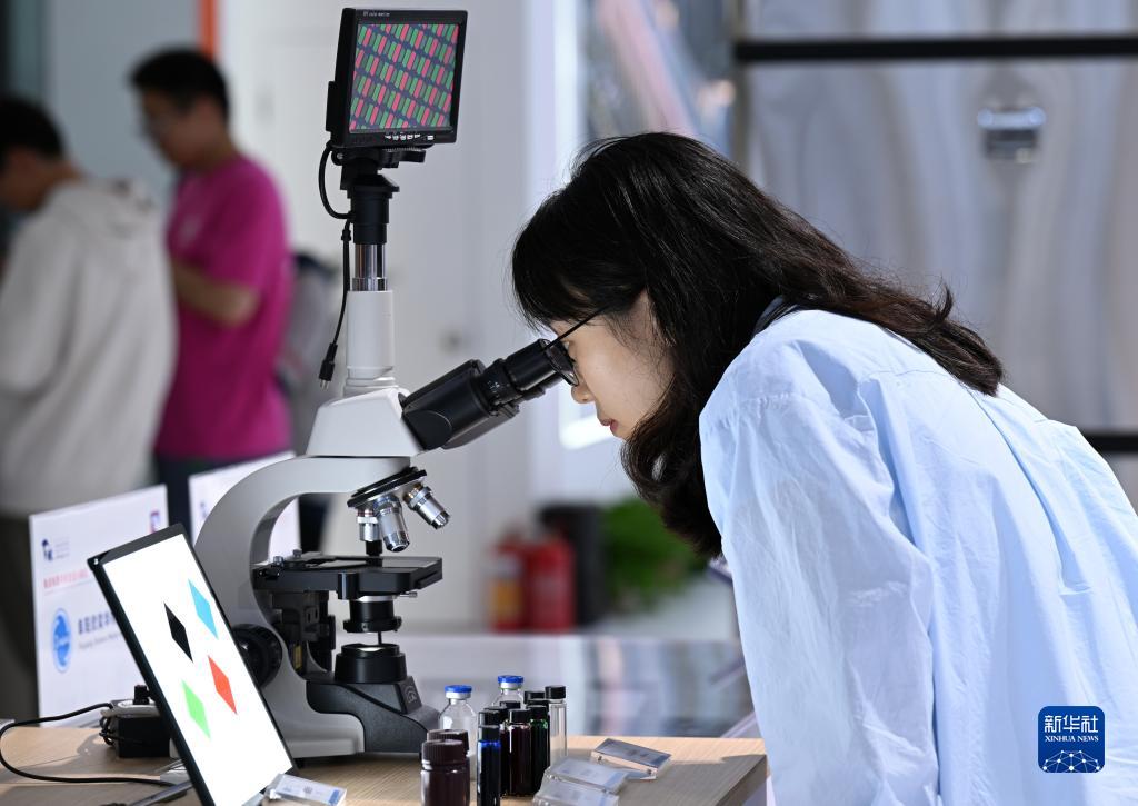 9月22日,觀眾在2023世界制造業大會集成電路與新型顯示展區參觀體驗。