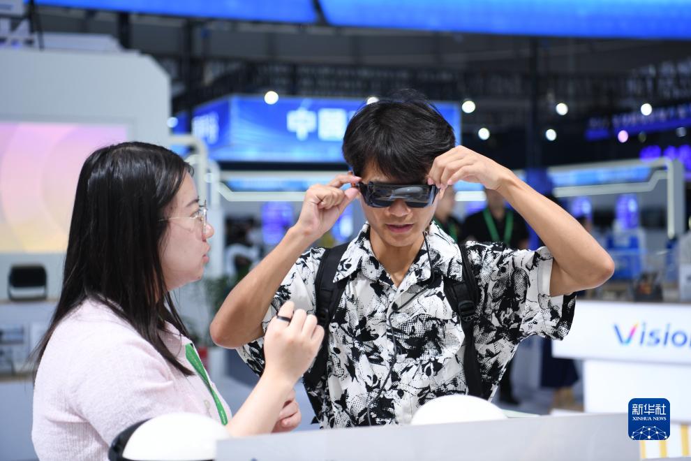 9月20日,觀眾在2023世界制造業(yè)大會集成電路與新型顯示展區(qū)體驗一款智能觀影眼鏡。
