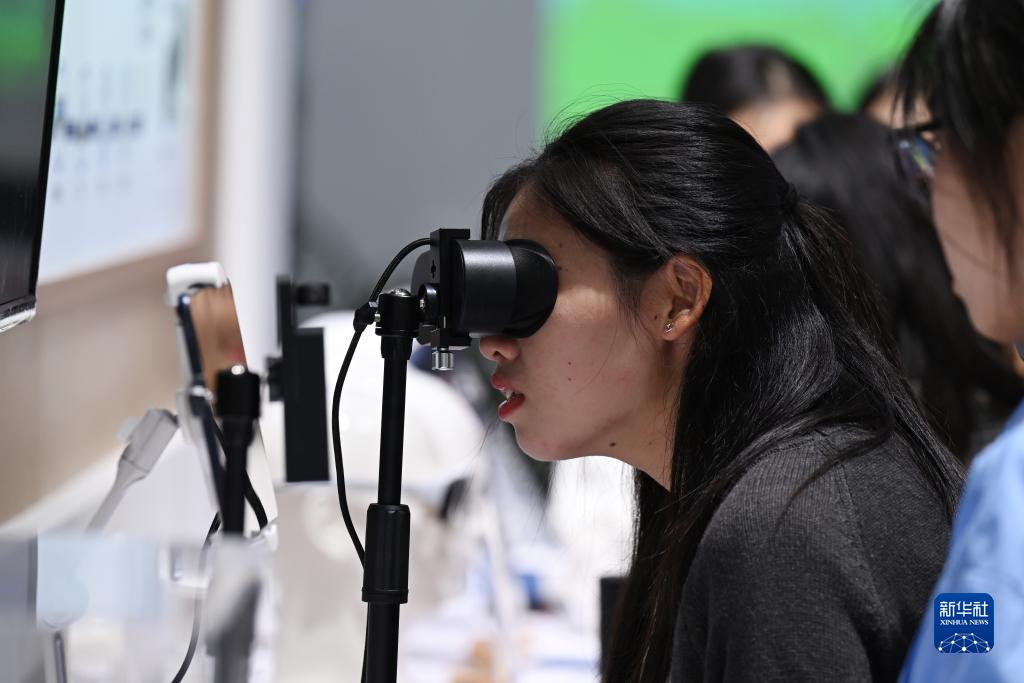 9月22日,觀眾在2023世界制造業(yè)大會集成電路與新型顯示展區(qū)體驗一款VR眼鏡。