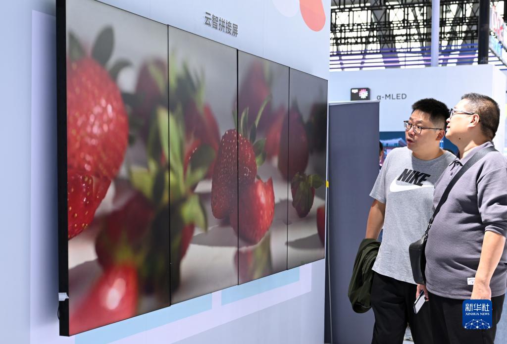 9月22日,觀眾在2023世界制造業(yè)大會(huì)集成電路與新型顯示展區(qū)觀看一款拼接屏。