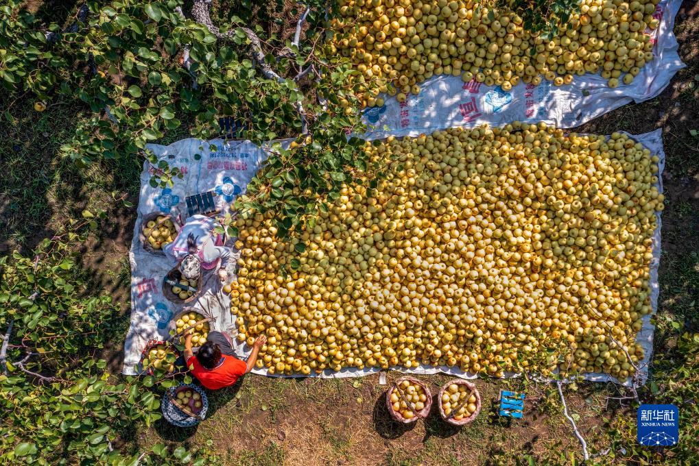 九月,安徽省宿州市碭山縣梨園里一派忙碌的收獲景象,梨農們搶抓晴好天氣,采摘銷售新鮮酥梨。近年來,碭山酥梨產業越來越旺,成為群眾致富增收的“金名片”。目前,全縣梨樹種植面積約為40萬畝,其中酥梨約25萬畝。