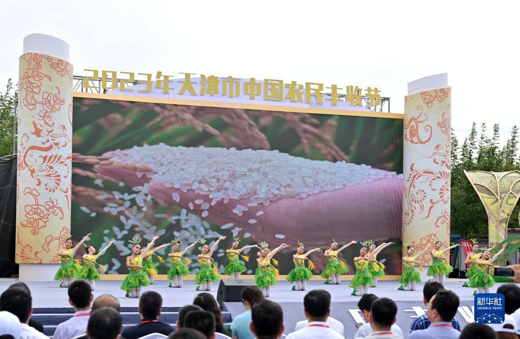 當日,2023年天津市中國農民豐收節主會場慶典活動在寧河區寧和稻香生態園舉行。