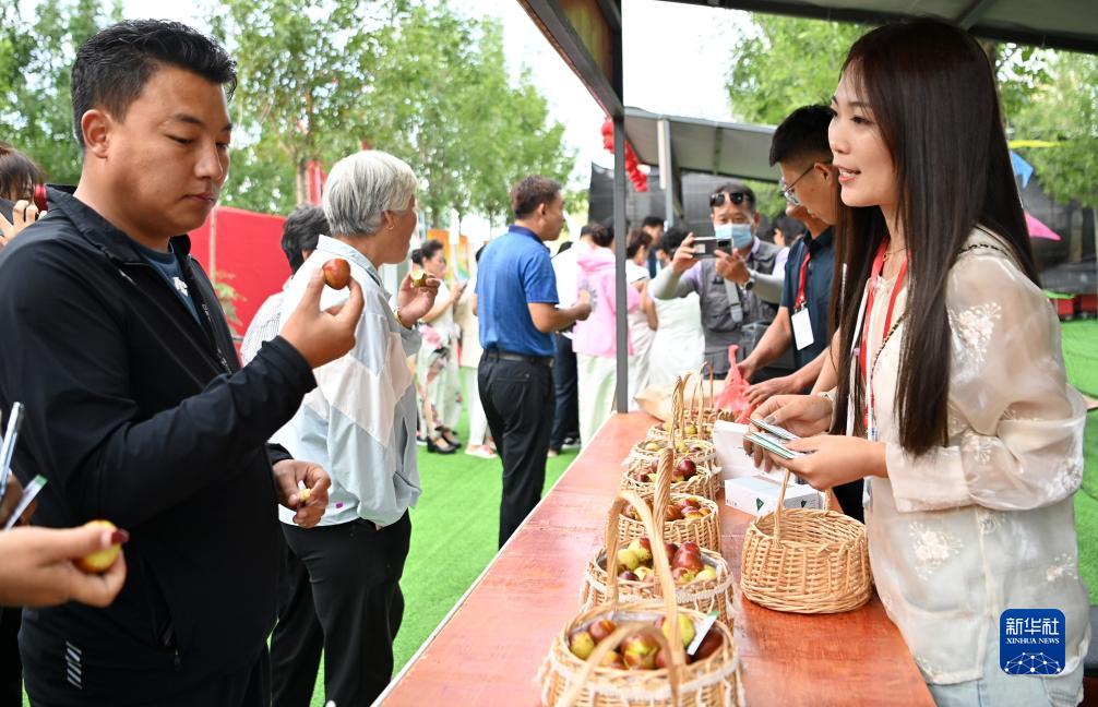 9月23日,展商在農(nóng)產(chǎn)品集市上介紹棗子。