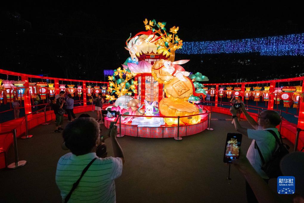 9月23日,人們在香港維多利亞公園參觀中秋彩燈會。