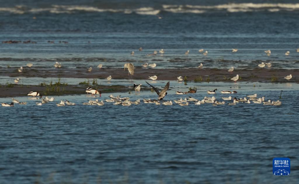 9月23日,一群水鳥在河北省秦皇島市北戴河區沿海濕地覓食。