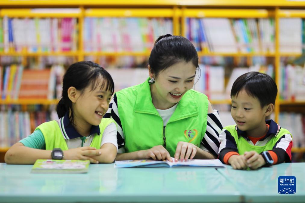 9月23日,在赤水市市中街道老城社區,“童伴媽媽”陪伴孩子們閱讀課外讀物。