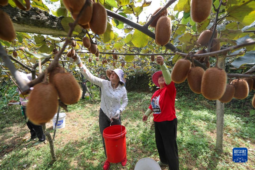 金秋時節,貴州省貴陽市修文縣種植的獼猴桃陸續成熟,果農和企業忙著采摘、分揀、包裝獼猴桃,加工獼猴桃系列產品,供應市場。