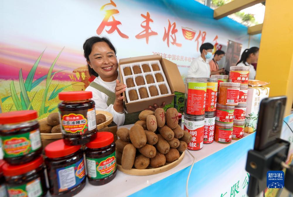9月23日,主播在貴州省貴陽市修文縣六屯鎮大木村直播推介獼猴桃。