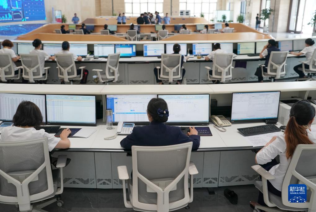 9月7日,工作人員在位于西安國際港站內的貨運服務中心大廳中處理業務。