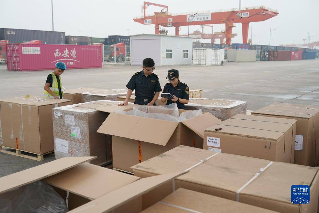 9月11日,西安車站海關工作人員在西安國際港站海關監管區內查驗進口貨物。