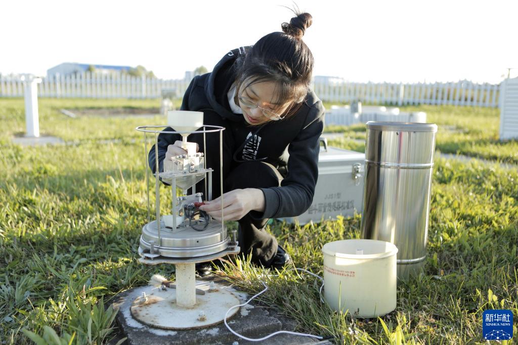 近日,“大糧倉”黑龍江省迎來秋收季。在三江平原腹地黑龍江省富錦市現代農業萬畝水稻科技示范園,23歲的農業氣象觀測員王國泰與另外三名氣象員主要負責氣象日常監測預報預警和農業氣象服務工作。