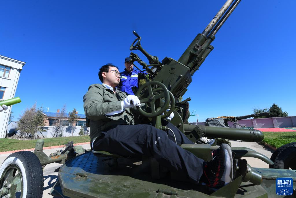 在富錦市氣象局高炮作業點,氣象員李辰暉在學習人工影響天氣高炮操縱作業(9月23日攝)。
