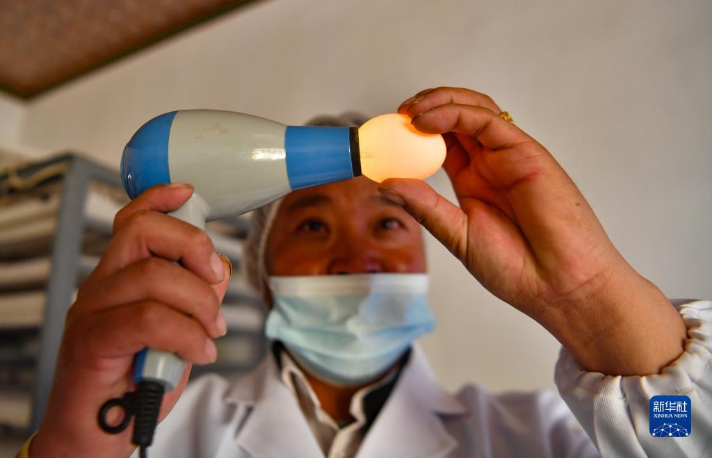 9月24日,合作社工作人員在檢查雞蛋質量。