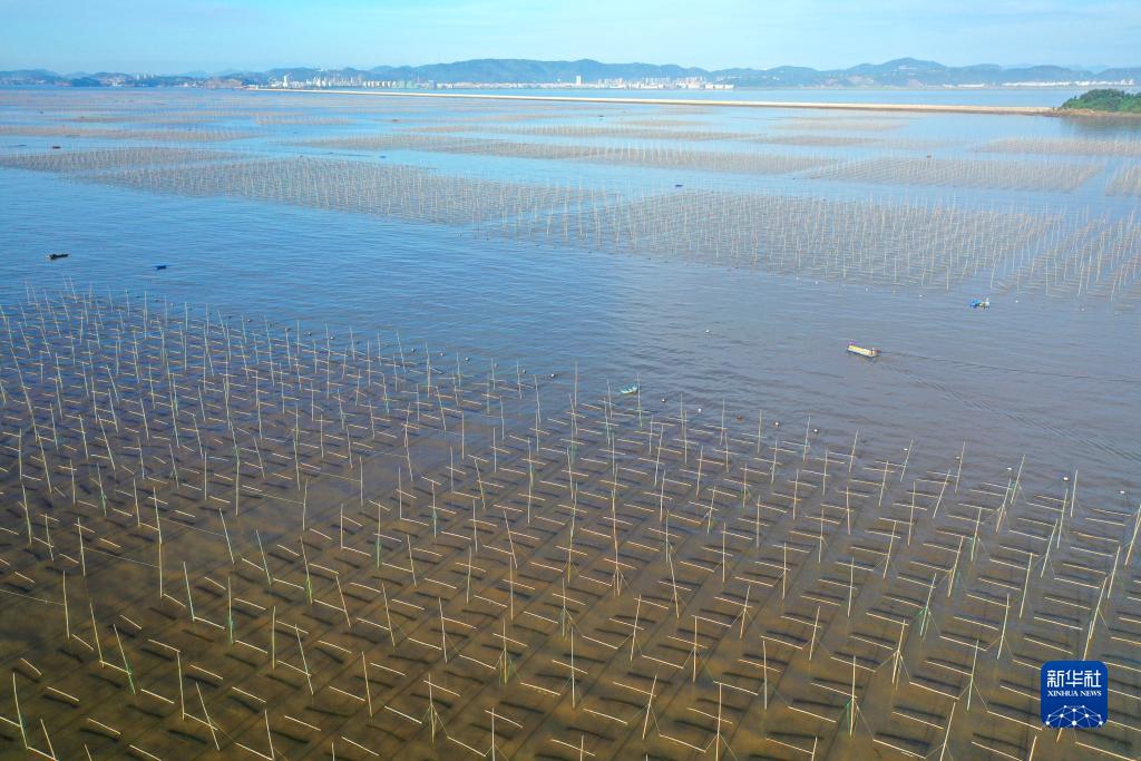 9月24日在玉環市干江鎮下礁門淺海水域拍攝的紫菜養殖區(無人機照片)。