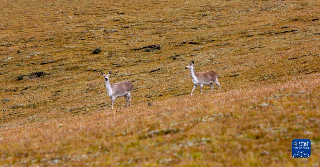 9月24日,幾只西藏馬鹿出現在位于西藏自治區山南市桑日縣的貢德林草原上。