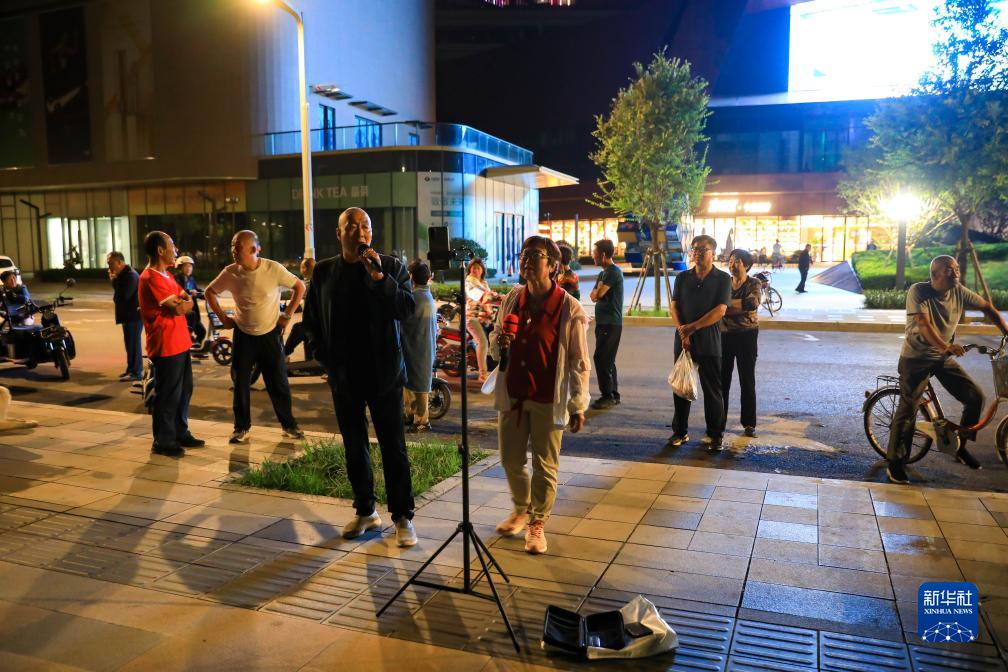 居民在雄安新區容東片區雙文街附近休閑娛樂(9月19日攝)。