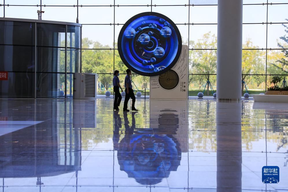 雄安站工作人員從“千年輪”前走過(9月22日攝)。