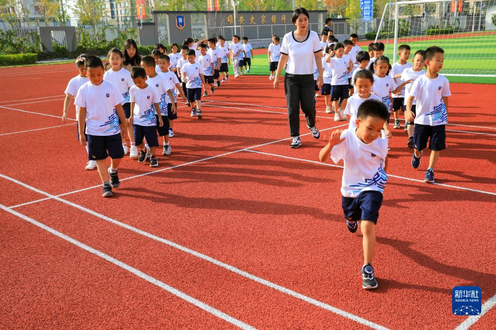 雄安史家胡同小學的學生們在操場上活動(9月18日攝)。