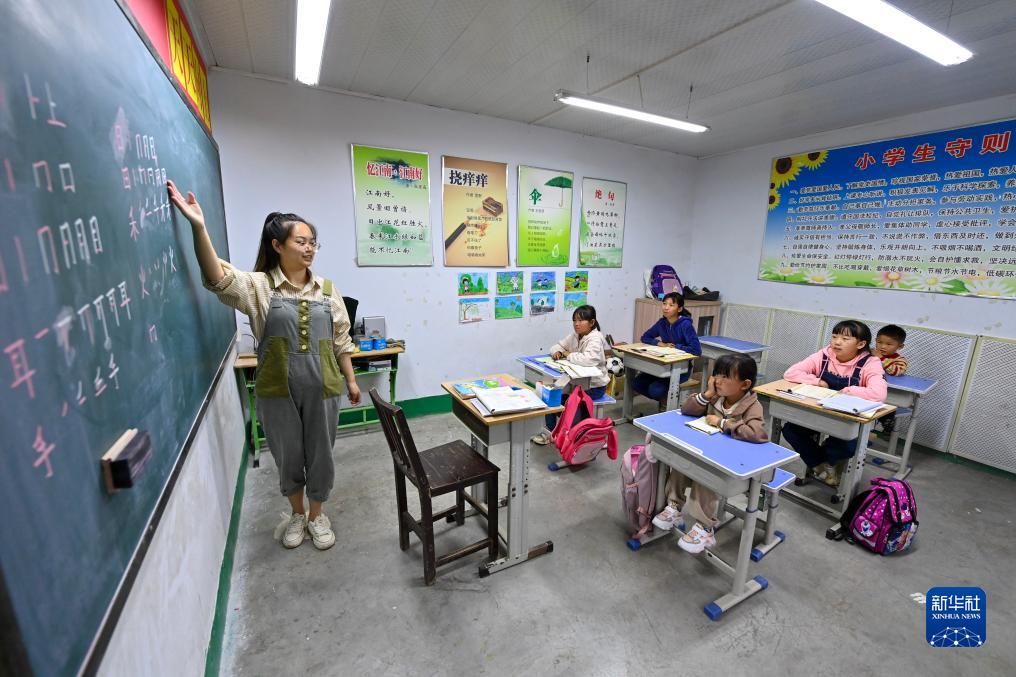 在馬武寨寄宿制小學,特崗教師趙祎嬌給學生們上語文課(9月19日攝)。新華社記者 楊晨光 攝