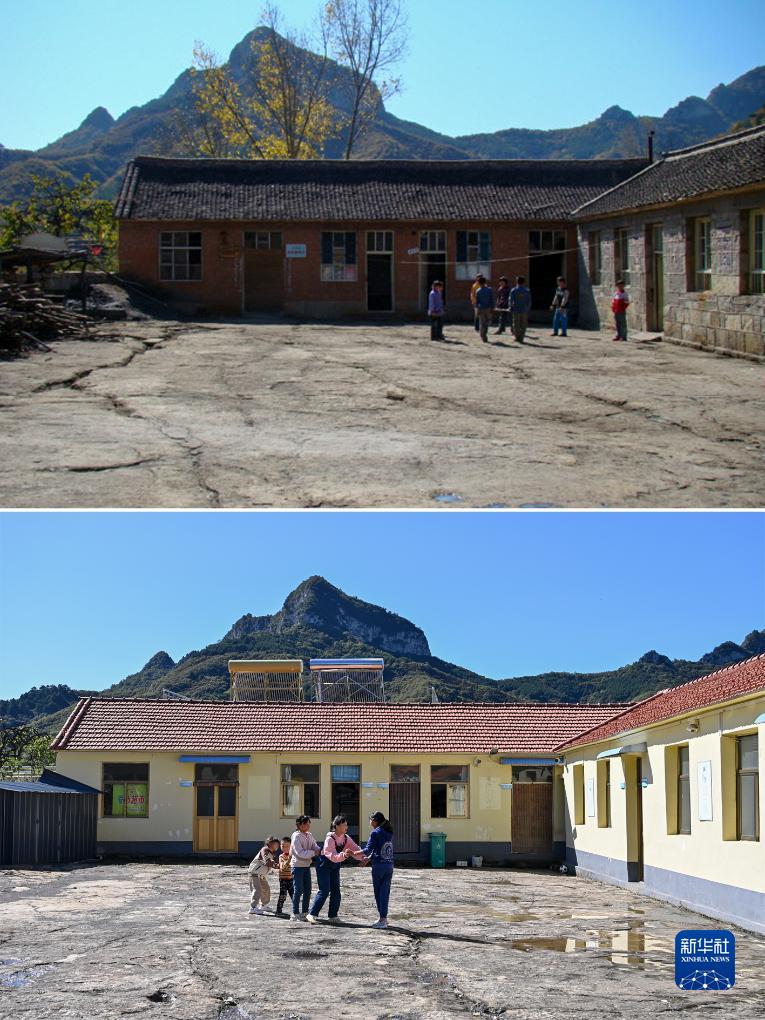 拼版照片:上圖為2009年10月14日拍攝的馬武寨寄宿制小學(xué)一角(新華社發(fā));下圖為2023年9月20日拍攝的馬武寨寄宿制小學(xué)一角(新華社記者楊晨光攝)。新華社發(fā)