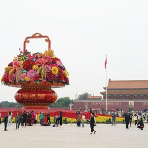 中秋及國慶節(jié)假期日益臨近,北京天安門廣場的“祝福祖國”巨型花籃及長安街沿線立體花壇精彩亮相,吸引游人及市民觀賞留念。