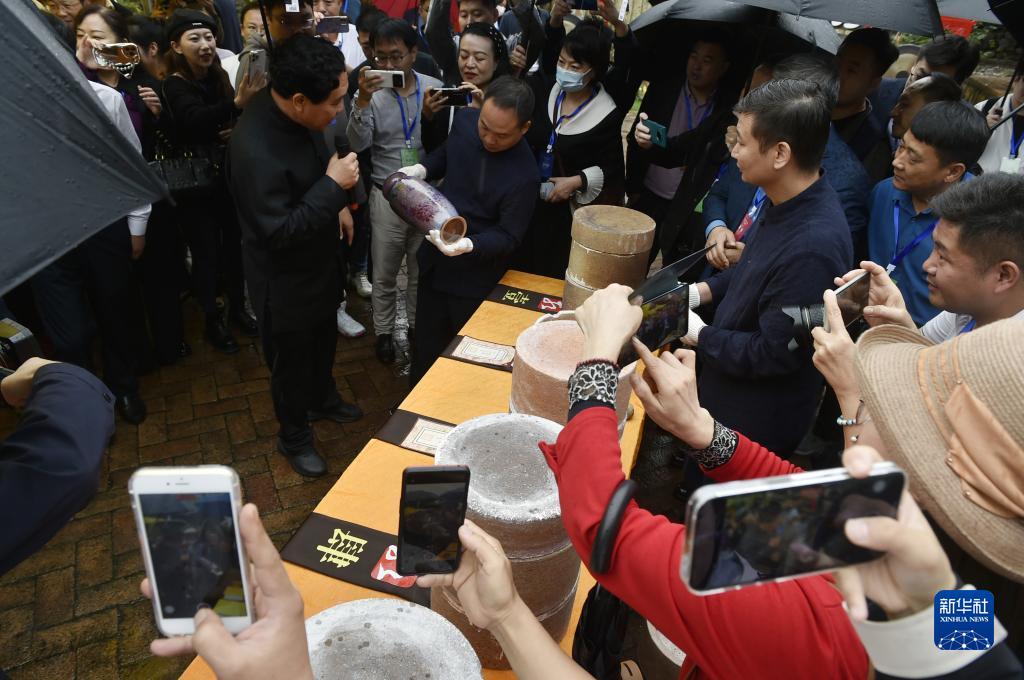 9月25日在禹州市神垕鎮孔家鈞瓷拍攝的開窯儀式現場。