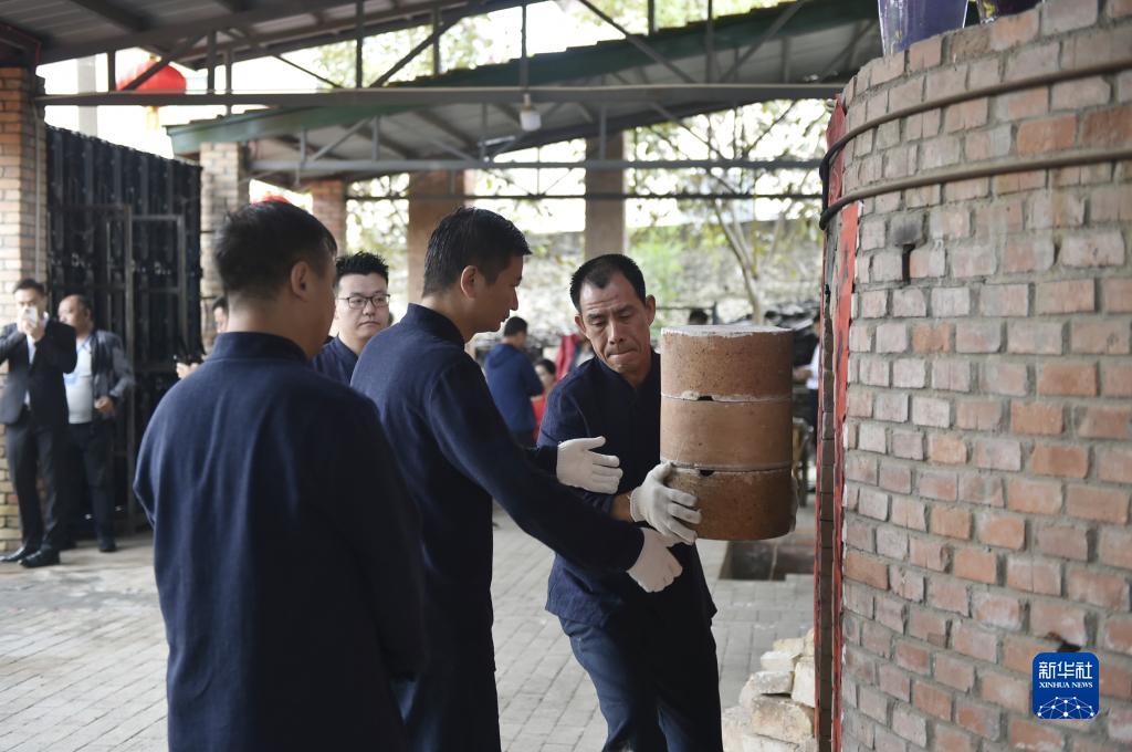 9月25日在禹州市神垕鎮(zhèn)孔家鈞瓷拍攝的開(kāi)窯儀式現(xiàn)場(chǎng)。