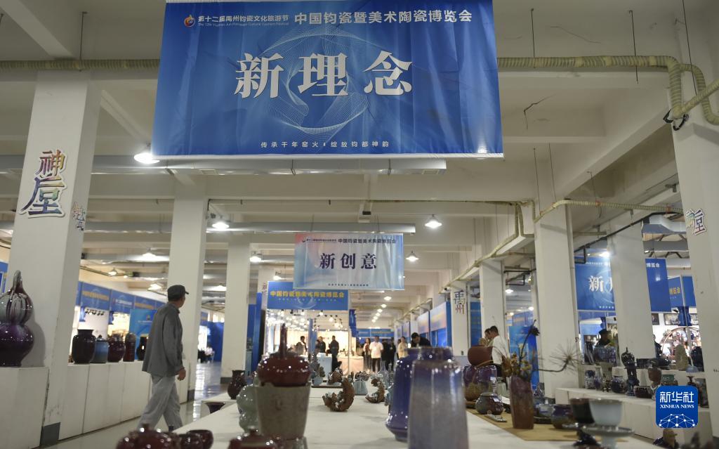 9月25日在禹州市神垕鈞瓷工業(yè)文化園內(nèi)拍攝的中國(guó)鈞瓷暨美術(shù)陶瓷博覽會(huì)現(xiàn)場(chǎng)。