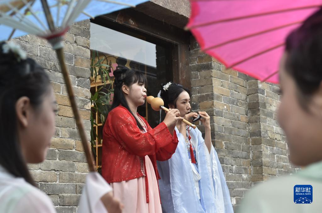 9月25日,身穿古裝的工作人員在禹州市神垕老街為游客表演。