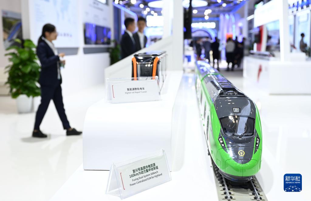 這是展出的復(fù)興號(hào)高原內(nèi)電雙源160km/h動(dòng)力集中動(dòng)車組(9月25日攝)。