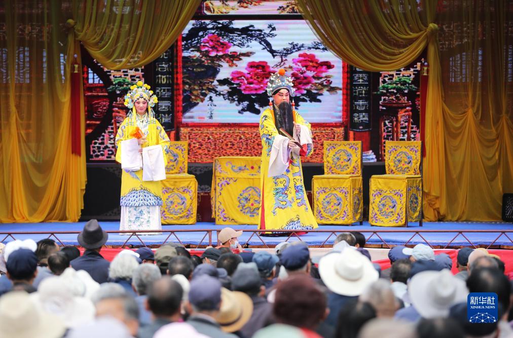 演員在甘肅省定西市體育公園演唱秦腔經典傳統劇《打金枝》(9月19日攝)。