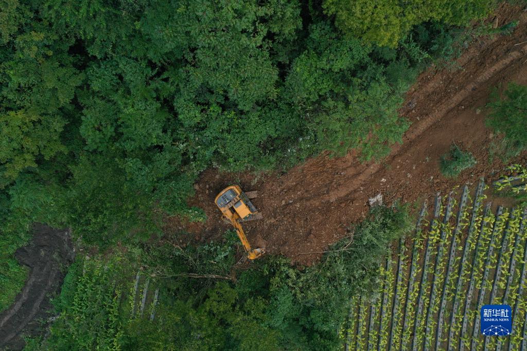 9月25日在重慶市巫山縣篤坪鄉腰棧村拍攝的一滑坡處置現場(無人機照片)。