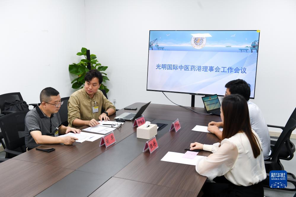 9月4日,在深圳光明國際中醫藥港,郭鈞泯(左二)在參與理事會工作會議。