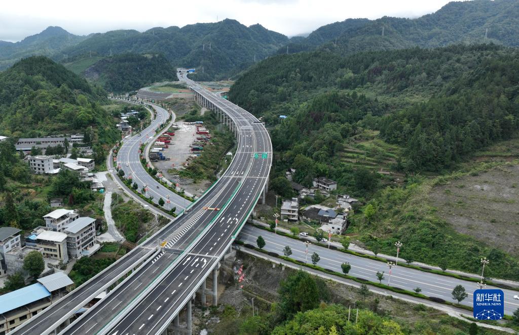 這是9月25日拍攝的湖北省恩施土家族苗族自治州境內(nèi)的張南高速湖北宣咸段(無人機照片)。