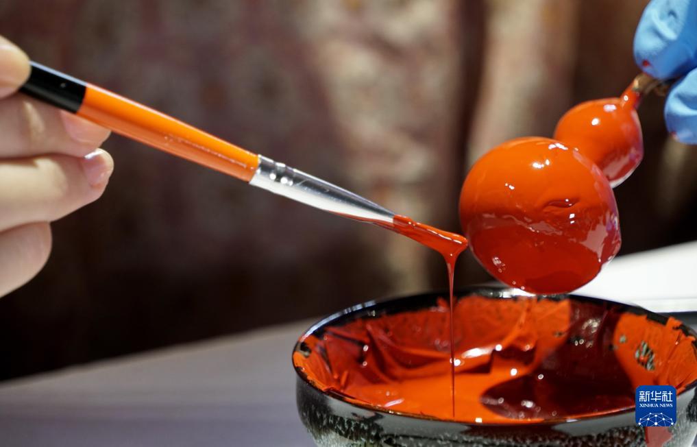海燕在為葫蘆髹漆準備制作雕漆文創產品(9月8日攝)。