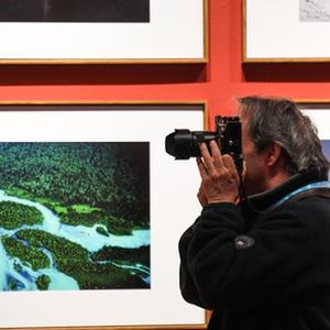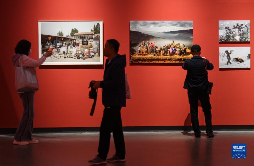9月26日,在新疆美術館,參觀者在觀看展出的攝影作品。