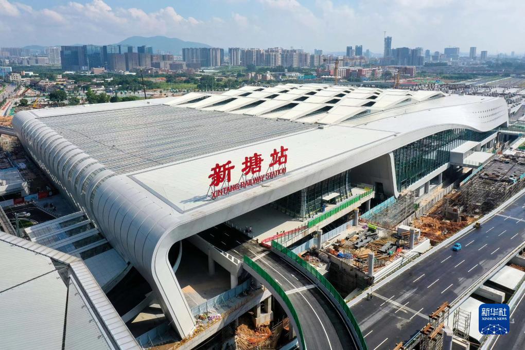 這是中鐵四局承建的廣汕高鐵新塘站(無人機照片,9月26日攝)。