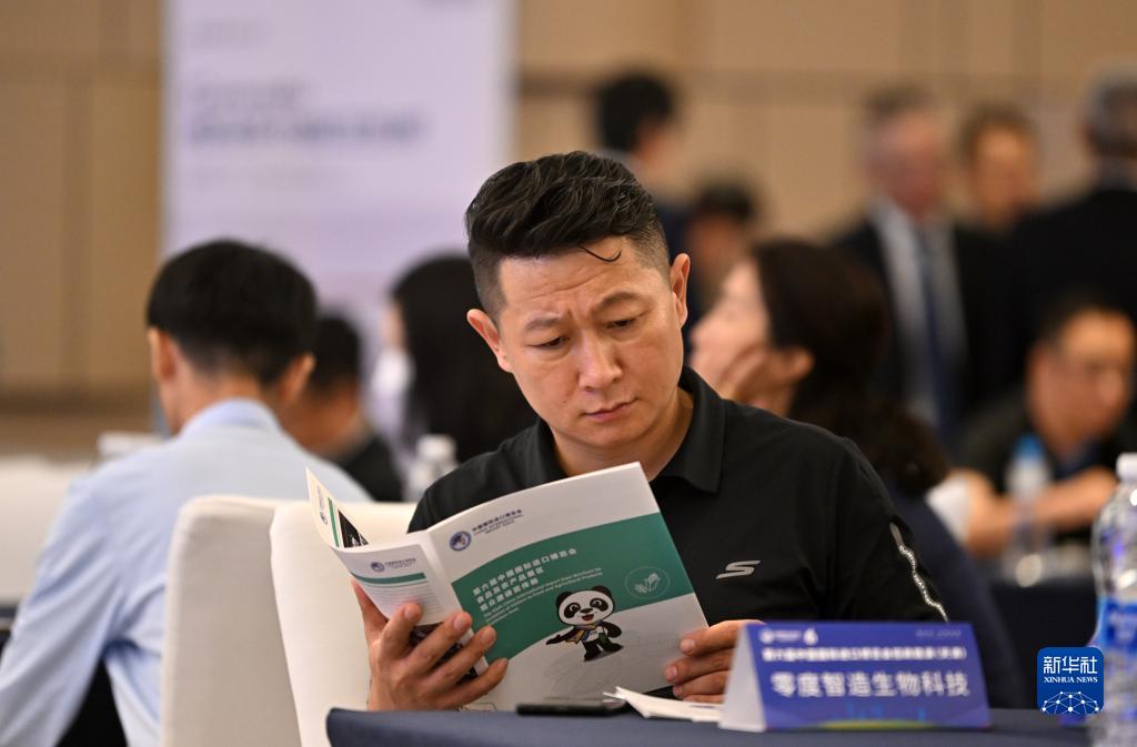 9月26日,來自天津的采購商代表在活動現場翻閱宣傳冊。