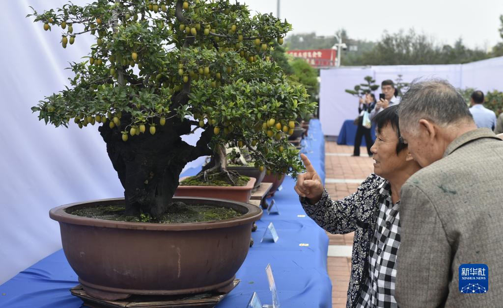 9月26日,觀眾在鄢陵縣花博公園參觀盆景。
