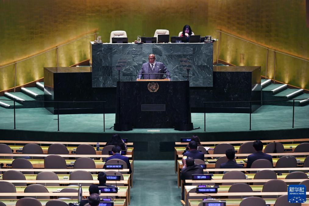9月26日,在位于紐約的聯合國總部,第78屆聯大主席弗朗西斯(中)發表聯合國大會一般性辯論閉幕講話。